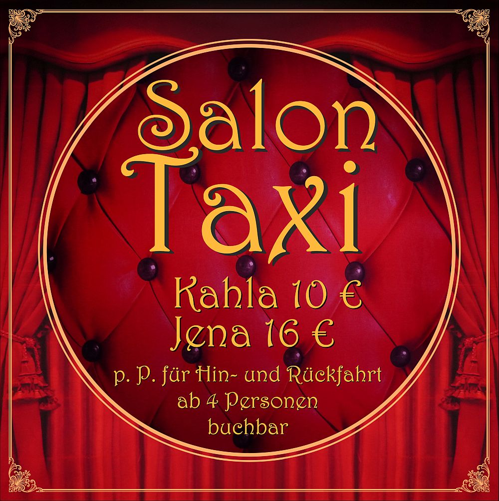 Shuttleservice aus Kahla oder Jena zur Absinthnacht mit Burlesqueshow von Parfait de la Neige am 23.Oktober 2026. Abfahrt in Jena am Busbahnhof mit möglichem Halt in Winzerla und Lobeda. Abfahrt in Kahla am Bahnhof. Die Abfahrtzeiten variieren je nach gebuchten Zustiegen und werden am Tag vor der Veranstaltung per e-Mail bekannt gegeben. Rückfahrt um 0:00 Uhr ab Spielmannshof.